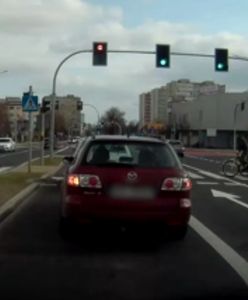 Na czerwonym, po pasach. Niebezpieczny przejazd rowerzystów
