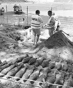 Dwieście kilogramów materiałów wybuchowych wydobyto w czwartek z ziemi kilkanaście metrów od trybun stadionu gdańskiej Lechii.