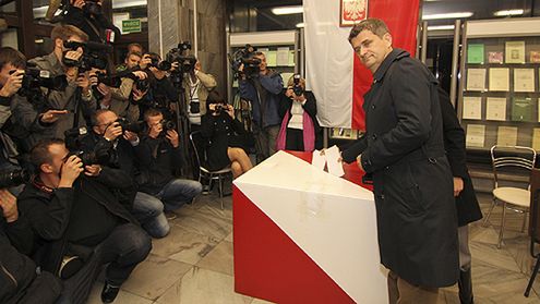 Liderzy ugrupowań oddali swoje głosy w wyborach parlamentarnych. Zobacz, kto już oddał swój głos. Na zdjęciu szef SLD Grzegorz Napieralski.