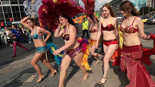 Studenci jednak nie zawiedli organizatorów parady - barwnie przebrani niczym na brazylijskim karnawale - z euforią i rozmachem kroczyli ulicami stolicy.