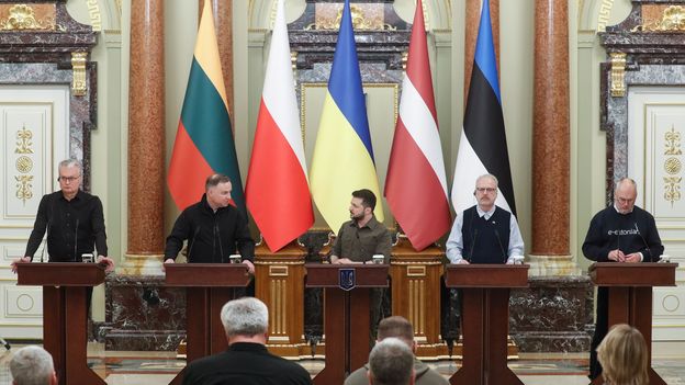Reporter Wirtualnej Polski Patryk Michalski przekazał w relacji dla programu "Newsroom", że Andrzej Duda po wizycie w Borodziance powiedział: "to nie wojna, to terroryzm". Dziennikarz przypomniał, że ta ukraińska miejscowość została niemal całkowicie zniszczona i ostrzelana przez rosyjskie siły, a pod gruzami budynków wciąż znajdują się ludzie. - Wizyta prezydentów: Polski, Litwy Łotwy i Estonii była podzielona na dwie części. Najpierw przywódcy tych krajów chcieli na własne oczy zobaczyć, jakie szkody Rosjanie wyrządzili w okolicznych miejscowościach - dodał Michalski. Reporter WP przypomniał, że przywódcy europejskich krajów domagali się m.in. powołania międzynarodowego trybunału, który osądzi zbrodnie dokonane przez Rosjan. - Mówili także o konieczności dostarczania broni Ukrainie - dodał dziennikarz WP. Patryk Michalski zaznaczył, że Wołodymyr Zełenski oznajmił, że wszystkie te 4 kraje, których prezydenci odwiedzili kraje, to są państwa, które od samego początku stoją na pierwszej linii. "Zapiszecie się na kartach naszej historii, będziemy zawsze o was pamiętali" - takie słowa powiedział ukraiński przywódca. - Ta wizyta skupiała się przede wszystkim na tym, aby podkreślać, aby kraje UE nie mogły zapomnieć o zbrodniach dokonywanych przez Rosjan - podkreślił Patryk Michalski. Reporter WP dodał, że prezydent Ukrainy mimo wojny jest w stanie zapraszać europejskich przywódców, gwarantując im bezpieczeństwo, na tyle, ile to możliwe. - Wszystko odbywa się w szczególnym reżimie. Dziennikarze wpuszczani są na konferencje bez telefonów komórkowych - wyjaśnił Patyk Michalski i dodał, że rejestrowanie przebiegu konferencji jest możliwe, jednak dopiero później może ona być transmitowana. Ze względu na bezpieczeństwo nie może to się odbywać w czasie rzeczywistym. - Widać, jak dobrze chroniony jest prezydent Ukrainy - relacjonował reporter WP. Patryk Michalski odniósł się także do zdjęcia, które stało się symbolem wizyty prezydenta Dudy. - To jest moment przywitania Andrzeja Dudy i Wołodymyra Zełenskiego - wyjaśnił. - Braterski uścisk. To jest ten obraz, który zostanie zapamiętany po tej wizycie - podkreślił Michalski i dodał, że jest to symbol, który mówi o tym, jak bliskie są relacje polsko-ukraińskie.