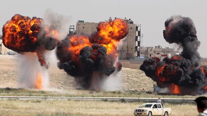 Na zdjęciu spektakularne eksplozje podczas pokazu umiejętności jordańskich jednostek specjalnych, który odbył się na otwarcie wystawy SOFEX 2012.