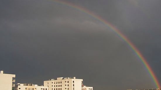 Piękna tęcza pokazała się we wtorek po południu nad Warszawą. Aż miło było popatrzeć...