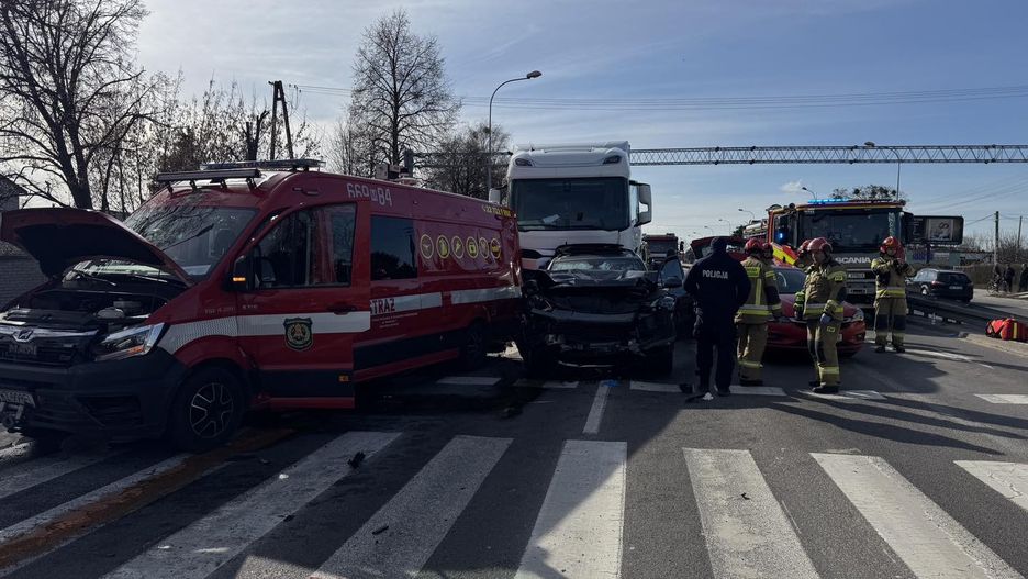 Na drodze krajowej nr 92 pod Ożarowem Mazowieckim doszło do poważnego wypadku z udziałem TIR-a i samochodu straży pożarnej. Pięć osób zostało rannych.