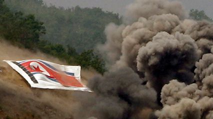 Na zdjęciu: ostrzał wzgórza. U szczytu flaga Korei Północnej.