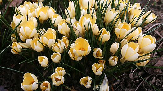 Amatorka szafranu, oblatuje krokusy w ogródku