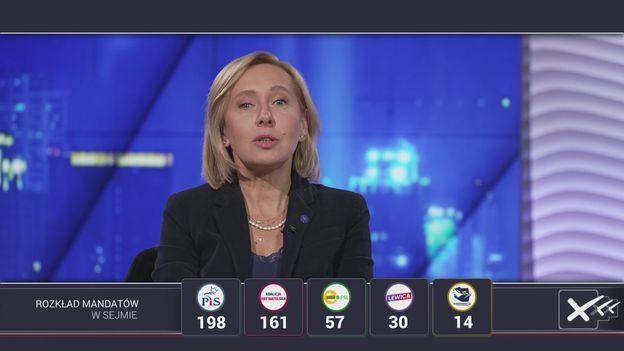 Czy PiS ma szansę uzbierać większość w Sejmie? - Jeśli te wyniki się potwierdzą, teoretycznie mogłaby uzbierać, natomiast w moim przekonaniu jest to niemożliwe - mówiła w Poranku powyborczym w Wirtualnej Polsce dr Anna Materska-Sosnowska z Uniwersytetu Warszawskiego. Oceniła, że inaczej by to wyglądało, gdyby chodziło o kilka posłów, a co innego, gdy trzeba stworzyć całą koalicję.