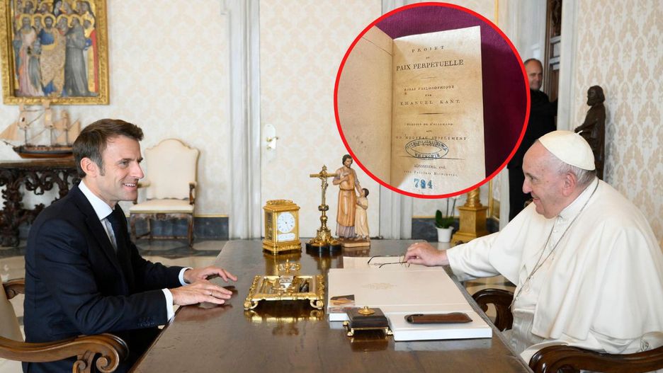 W poniedziałek papież i prezydent Macron rozmawiali w Watykanie m.in. o sytuacji w Ukrainie. Jak nakazuje protokół, wymienili się prezentami. Francuski prezydent dał papieżowi wyjątkowe, bo pierwsze, wydanie z 1796 roku rozprawy filozoficznej Immanuela Kanta "Projekt wiecznego pokoju".