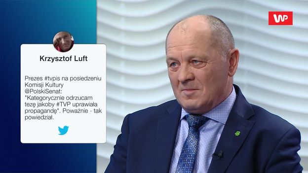 Jacek Kurski na posiedzeniu senackiej komisji kultury "kategorycznie odrzucał tezę, jakoby TVP uprawiała propagandę". - Problem polega na tym, że znam go od wielu, wielu lat. Znam też frazę, od której dziś się odżegnuje: ciemny lud to kupi. Jak włączam programy informacyjne TVP, jest mi przykro, że od '83 roku nieprzerwanie płacę na nią abonament. To dla mnie upokarzające - komentował Marek Sawicki (PSL) w programie "Tłit". - Pamiętam "Dziennik Telewizyjny". Takiej żywej propagandy, jaka ma miejsce w tej chwili, za czasów stanu wojennego nie było - podkreślił.