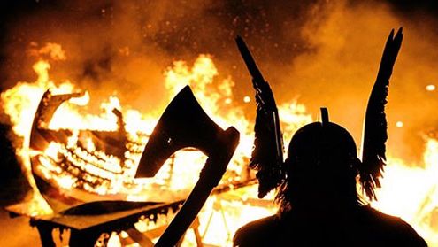 Topory, pochodnie i płonąca łódź - zdjęcia Szetlandów