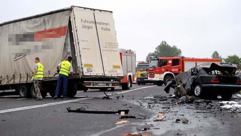 Mercedes spłonął po zderzeniu z tirem - zdjęcia