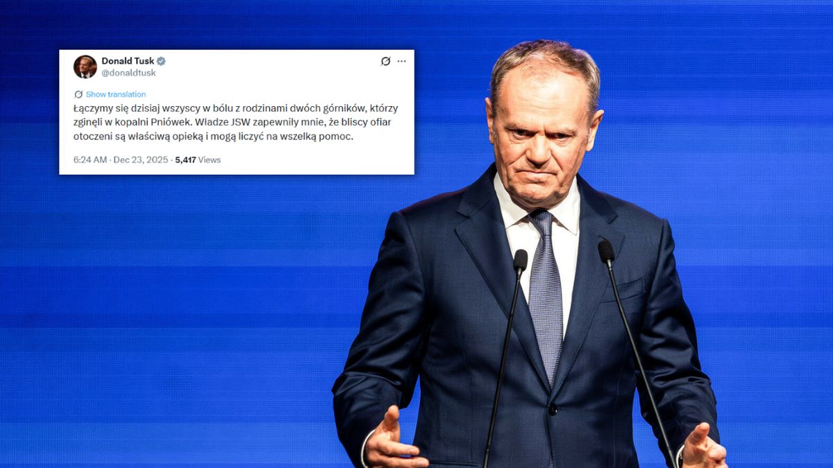 "Łączymy się dzisiaj wszyscy w bólu z rodzinami dwóch górników, którzy zginęli w kopalni Pniówek. Władze JSW zapewniły mnie, że bliscy ofiar otoczeni są właściwą opieką i mogą liczyć na wszelką pomoc" - napisał we wtorek rano w serwisie X premier Donald Tusk.