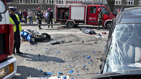 26-letni motocyklista uderzył w osobówkę z ogromną siłą.
