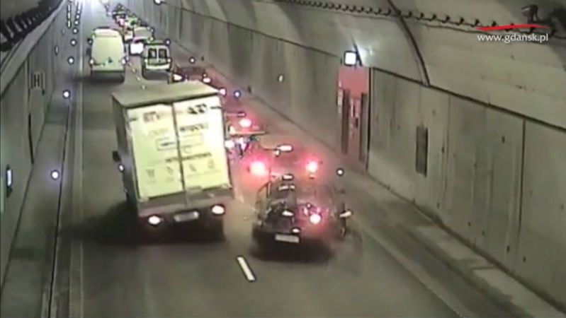 Jazda tyłem pod prąd, niebezpieczna prędkość, wypadki i urwane części - to wyczyny kierowców, które zarejestrowały kamery monitoringu w tunelu pod Martwą Wisłą w Gdańsku. To nagrania z ostatnich miesięcy - w ciągu roku służby odnotowują ponad 300 groźnych incydentów na tej trasie.