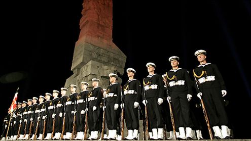 Warta honorowa przed Pomnikiem Obrońców Wybrzeża.