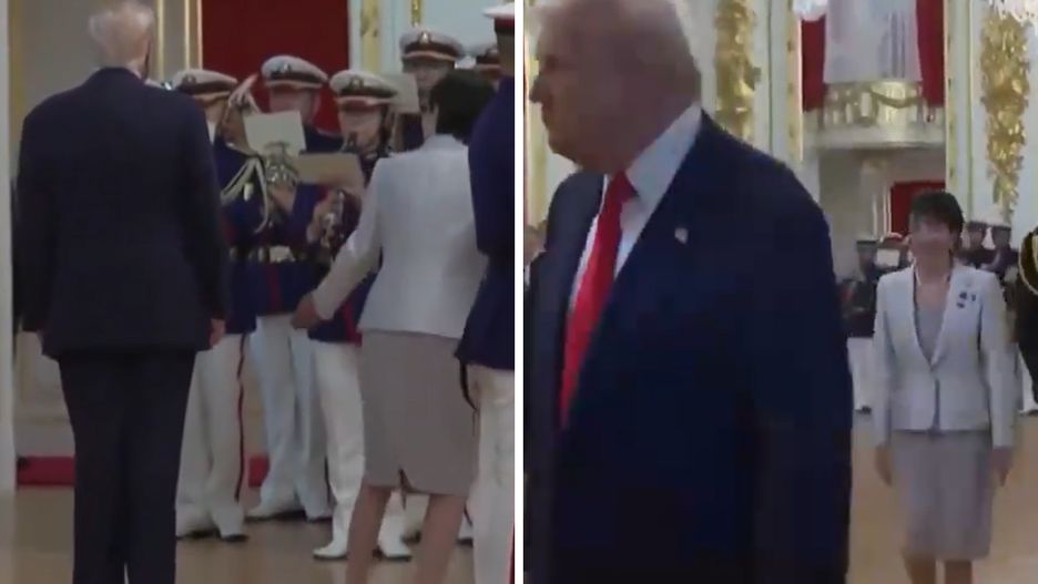 Na opublikowanym nagraniu widać, jak Trump w towarzystwie premier Japonii zmierza w kierunku orkiestry. Następnie przystaje przed muzykami, choć Sanae Takaichi idzie dalej.