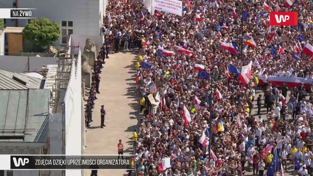 W niedzielnym marszu w Warszawie wzięło udział 500 tysięcy osób - podał stołeczny Ratusz. Uczestnicy manifestacji w drodze na plac Zamkowy zatrzymali się na chwilę przed Pałacem Prezydenckim, gdzie wznosili okrzyki m.in. wzywające do postawienia prezydenta Andrzeja Dudy przed Trybunałem Stanu. - Panie prezydencie, chcemy panu powiedzieć, że to, co pan i PiS zrobiliście jest destrukcyjne dla demokracji, wolności i praworządności. I dlatego tu jesteśmy - stwierdziła jedna z przemawiających osób. “Trybunał Stanu” - krzyczeli uczestnicy marszu.