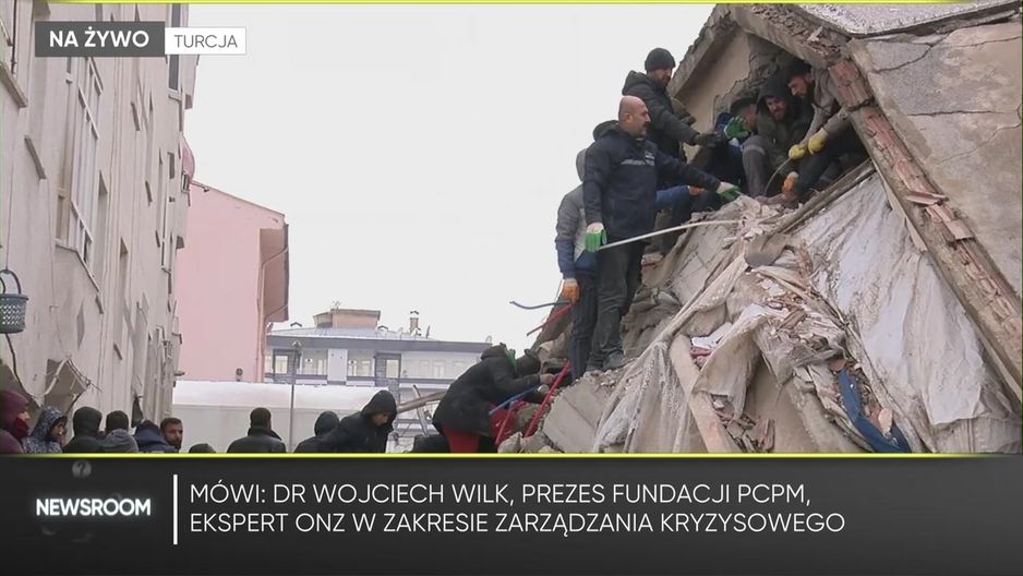 Silne trzęsienie ziemi nawiedziło Turcję i Syrię. - Mamy do czynienia z jednym z największych trzęsień ziemi w ostatnich latach. Zapewne największym od 2015 roku - ocenił w programie "Newsroom" Wirtualnej Polski dr Wojciech Wilk, prezes fundacji PCPM i ekspert ONZ w zakresie zarządzania kryzysowego. Gość WP zaznaczył, że było to bardzo silne trzęsienie ziemi i objęło duży obszar. Ekspert zaznaczył, że wstrząsy były odczuwane także w innych krajach m.in. w Libanie. - Nawet tam ludzie panicznie wybiegali z domu - wskazał. Dr Wojciech Wilk dodał, że trudne są także warunki pogodowe, bo aktualnie w Turcji jest zimno. - W nocy ma spaść temperatura poniżej zera - powiedział rozmówca Patrycjusza Wyżgi i zaznaczył, że osoby, które są uwięzione pod gruzami swoich domów, nie mają na sobie odzieży zimowej. - Osoba uwięziona pod gruzami budynku ma 72 godziny szans na przetrwanie, ale w tego typu warunkach pogodowych, bo nie tylko jest zimno, ale także pada deszcz, hipotermia będzie ogromnym zagrożeniem - dodał ekspert. - Turcy od razu poprosili o pomoc międzynarodową. To pokazuje, że skala tej katastrofy jest ogromna - podkreślił ekspert. Zdaniem dr. Wojciecha Wilka ta tragedia skończy się tysiącami ofiar, skoro kilka godzin po trzęsieniu informuje się o setkach zmarłych. Gość WP zdradził, że obawia się, że będzie to największa tragedia ostatnich lat.