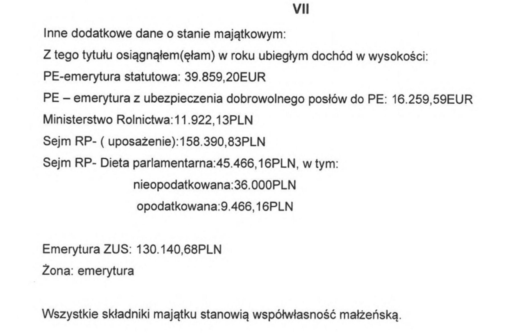 Jest nowe oświadczenie majątkowe ministra rolnictwa i rozwoju wsi. Czesław Siekierski posiada m.in. kilka mieszkań, gospodarstwo rolne i sporo oszczędności.