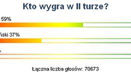 37% jest zdania, iż to Lech Kaczyński wygra II turę wyborów i zostanie Prezydentem RP. 3% odpowiedziało - "nie wiem". Ankieta została przeprowadzona w dniach 9 (od godz. 22.00)- 13 października. Internauci oddali 70.244 głosów.