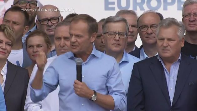 Szef Rady Europejskiej był gościem marszu Koalicji Europejskiej pod hasłem "Polska w Europie". W swoim przemówieniu zaatakował PiS. - Krzycząc "prawo" gwałcili konstytucję, krzycząc "sprawiedliwość" niszczyli polskie sądy, mówiąc o skromności głośno wykrzykiwali "te pieniądze nam się po prostu należą" - mówił Donald Tusk. Były premier odniósł się też do piątkowych słów Jarosława Kaczyńskiego. - Ktoś tu mówił niedawno o szariacie. Znam autora tych słów. Jak mówi, że chce przed czymś bronić, to zazwyczaj o tym marzy. Jest wielu takich na świecie. Jeden nazywa się prezes, a inny ajatollah. Ale różnica między nimi jest nieduża - powiedział.