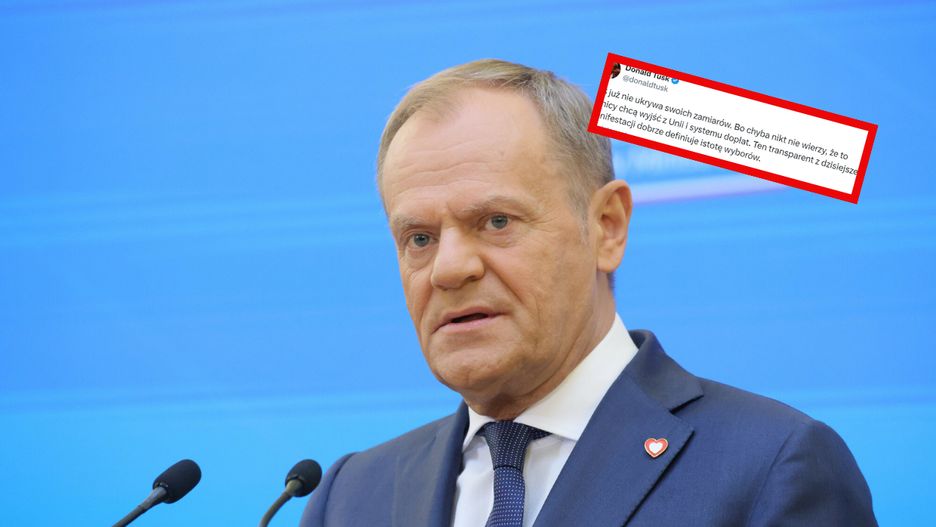 "PiS już nie ukrywa swoich zamiarów. Bo chyba nikt nie wierzy, że to rolnicy chcą wyjść z Unii i systemu dopłat. Ten transparent z dzisiejszej manifestacji dobrze definiuje istotę wyborów" - napisał Donald Tusk w serwisie X.