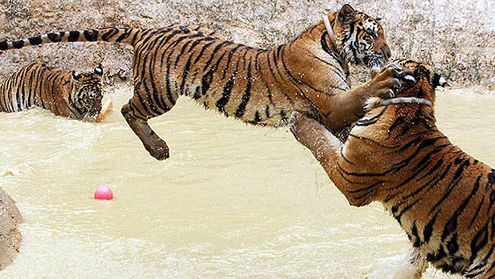 Jednak turyści mogą przebywać z tygrysami i jak dotąd nikomu nic się nie stało.