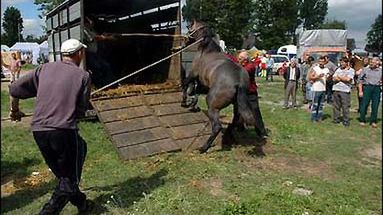 Wprowadzanie koni do przyczep było równie interesujące dla obecnych na targu, jak ich przyjazd na targ. Tłum ludzi otaczał przyczepę, do której dwóch mężczyzn próbowało wciągnąć na siłę siwka. Ten wierzgał, próbował stanąć dęba... Doradców było wielu, ale tylko jeden z nich, elegancko ubrany Cygan, zdecydował się pomóc. Podszedł do zwierzęcia złapał za uzdę i po prostu wprowadził go do przyczepy... W wielu oczach pojawiło się uznanie. – A mówią, że nie ma już prawdziwych Cyganów – szepnął ktoś w tłumie.
