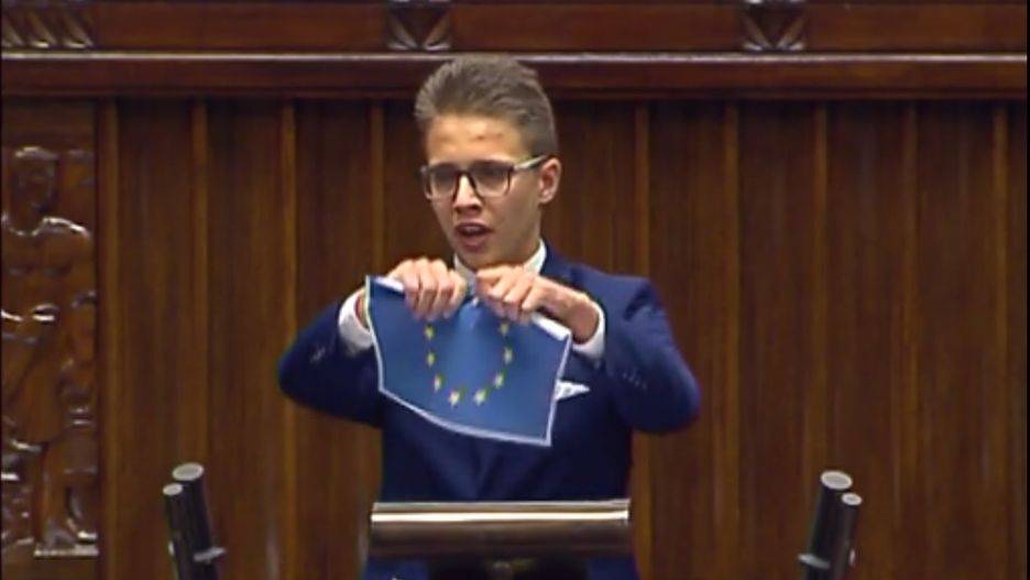 Tylko w WP. 17-latek który w Sejmie podarł flagę UE: Mówią o tolerancji, a mnie atakują