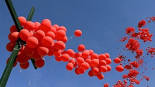 Cztery tysiące baloników uwolnionych w jednym momencie odsłoniło wielki drewniany krzyż.