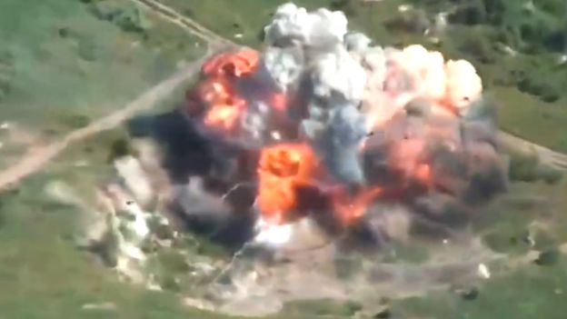Rosjanie nie mieli nawet czasu na reakcję. Do sieci trafiło nagranie z momentu ataku na rosyjską armatohaubicy 2S3 Akacja na wschód od miasta Sołedar. Na nagraniu widać potężną eksplozję zaraz po uderzeniu. Jak przekazali żołnierze z 40 Brygady Sił Zbrojnych Ukrainy na Telegramie, do zniszczenia rosyjskiej pozycji użyto ognia kontrbateryjnego przy wykorzystaniu pocisku ER GMLRS. Z tego względu niewykluczone, że w 2S3 Akację trafiła rakieta z HIMARS-ów lub MLRS-ów. Przy tak precyzyjnym uderzeniu z dalszej odległości okupanci zgromadzeni na tej pozycji nie mieli żadnych szans na przeżycie, ponieważ siła eksplozji była na tyle duża, co dobrze widać po rozerwanej na małe kawałki armatohaubicy, obok której roiło się również od amunicji.