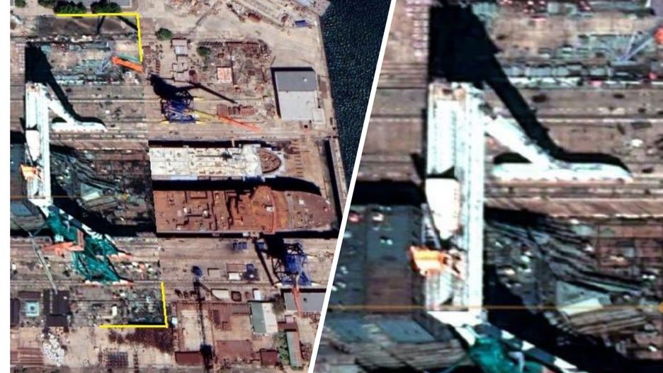 Zdjęcia satelitarne mają potwierdzać znaczące postępy w budowie okrętu w porównaniu z wcześniejszymi z lipca 2024 r., kiedy jego kadłub znajdował się jeszcze na wczesnym etapie montażu.