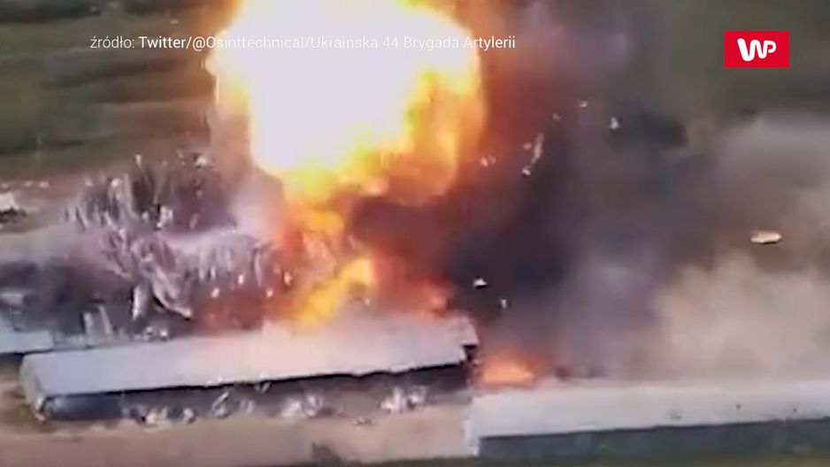 Do sieci trafiło nagranie z akcji Ukraińców wymierzonej w rosyjski magazyn broni. Do ataku doszło we wsi Woskresenka w obwodzie sumskim. W trakcie spektakularnej akcji Ukraińcy z 44 Brygady Artylerii zniszczyli magazyny rosyjskiej amunicji. To nie pierwsza taka akcja i potężny cios w Rosjan. Nagranie opublikował na Twitterze użytkownik OSINTtechnical. Siły ukraińskie korzystały m.in. z amerykańskich haubic M777. To broń, która służy do precyzyjnego uderzania w oddalone cele – o co najmniej 25 km. Przy użyciu pocisków odłamkowo-burzących członkom 44 Brygady Artylerii udało się precyzyjnie uderzyć w rosyjskie stanowisko. Spektakularny moment uderzenia nagrał z góry dron. Oprócz nagrania w sieci opublikowano zdjęcia ukraińskiej armii w trakcie obsługi haubic M777. 44 Brygada Artylerii to formacja artyleryjska Ukraińskich Sił Lądowych z siedzibą w Tarnopolu.