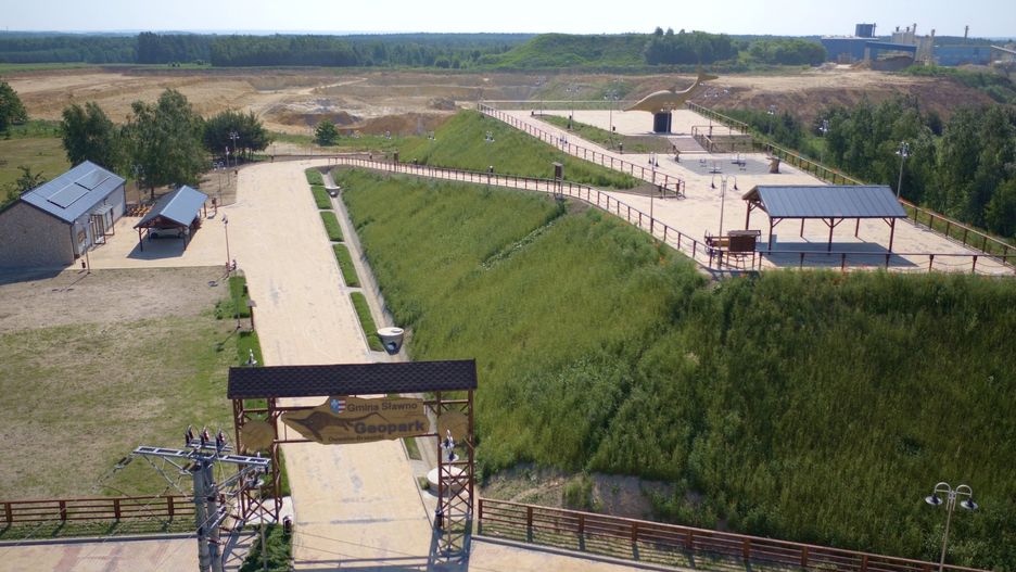 Projekt został zakończony w 2019 roku i kosztował 10 mln zł, z czego siedem mln pochodziło ze środków Unii Europejskiej. Wykonano taras widokowy czynnego wyrobiska kopalni oraz szereg infrastruktury rekreacyjno-turystycznej. Powstała ścieżka pieszo-rowerowa łączącą GEOPARK z centrum miejscowości Sławno oraz wybudowano Centrum Rekreacyjno-Turystyczne ze skateparkiem, wypożyczalnią sprzętu sportowego, placem zabaw, siłownią zewnętrzną o ścieżką rowerową "NATURA".