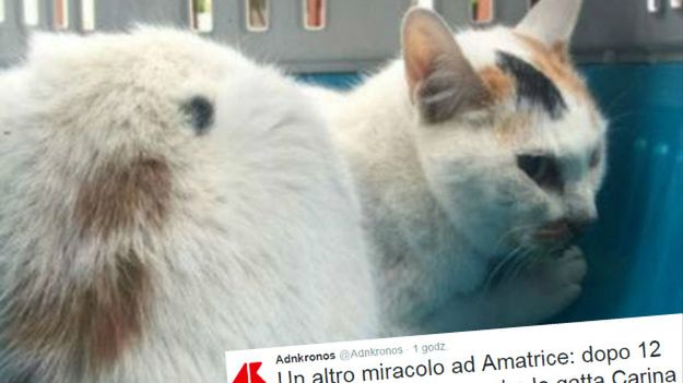 12 dni po trzęsieniu ziemi w środkowych Włoszech z ruin domu w miasteczku Amatrice strażacy wydobyli w poniedziałek żywą kotkę. Jej uratowana wcześniej siostra spędziła zasypana w gruzowisku 5 dni.