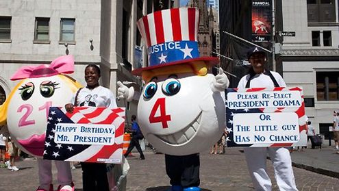 Amerykanie hucznie i z dużą pompą obchodzą na ulicach urodziny prezydenta Baracka Obamy.