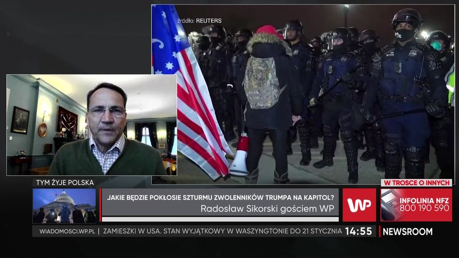 Po szturmie na Kapitol były prezydent USA George Bush ocenił, że "tak kwestionuje się wyniki wyborów w republice bananowej". Były szef polskich MSZ i MON Radosław Sikorski (PO) powiedział w programie Newsroom WP, że środowe zamieszki w Waszyngtonie to "kulminacja procesu, który zapoczątkował sam Donald Trump". - Chociażby już skandalicznym przemówieniem inaugurującym swoją prezydenturę i tymi wszystkimi instrumentami populizmu politycznego, który rozlał się po całym świecie Zachodu. Pionierami byli Orban z Kaczyńskim - mówił Sikorski. Gość Agnieszki Kopacz przypomniał również atak Trumpa na Baracka Obamą z wykorzystaniem nieprawdziwych twierdzeń na temat pochodzenia ówczesnego kandydata demokratów. Zdaniem Radosława Sikorskiego, niebezpieczne w USA jest to, że wyborcy Donalda Trumpa mają dostęp do broni. - Problemem w USA jest bardziej ekstremizm prawicowy niż muzułmański - dodał polityk PO. Pytany o to, co może stać się w najbliższym czasie w USA, były szef polskiej dyplomacji nie wykluczył, że Trump stanie na czele radykalnego ruchu politycznego, "aby być ponad prawem" albo będzie musiał wyjechać z kraju. - Stawiam tezę, że uzyska azyl w kraju, z którym USA nie mają umowy ekstradycyjnej, np. takim jak Federacja Rosyjska. Więc możemy zobaczyć go obok Janukowycza w Moskwie albo Rostowie. Władimir Putni miałby ubaw po pachy - komentował Radosław Sikorski.