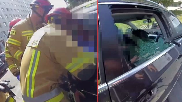 Finał policyjnej interwencji w oku kamery. Funkcjonariusze z Jastrzębia-Zdroju uratowali z nagrzanego auta mężczyznę, który nie mógł wydostać się z auta. Przegrzany i osłabiony wołał o pomoc. Policjanci wybili szybę, by uratować 25-latka z gorącej pułapki.