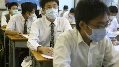 W maseczkach, które raczej nie pasują do tradycyjnych szkolnych mundurków, uczniowie szkół średnich w Hongkongu wrócili we wtorek do nauki. Przez ponad trzy tygodnie ich szkoły były zamknięte z powodu epidemii ostrej niewydolności oddechowej (SARS).
