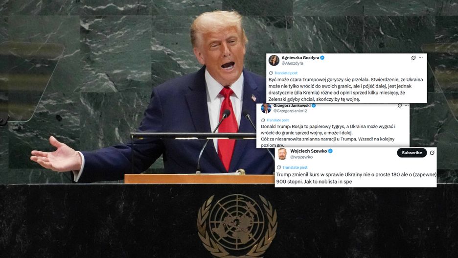 "Donald Trump: Rosja to papierowy tygrys, a Ukraina może wygrać i wrócić do granic sprzed wojny, a może i dalej. Cóż za niesamowita zmiana narracji u Trumpa. Wszedł na kolejny poziom gry" - stwierdził z kolei dziennikarz Grzegorz Jankowski.