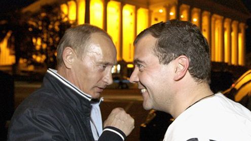 Miedwiediew (strój w stylu Man in Black, poza didżeja) i Putin spędzili razem rozkoszne popołudnie w Soczi nad Morzem Czarnym. Była sesja fotograficzna na plaży, wspólne oglądanie meczu w barze i "lanserka" na promenadzie.