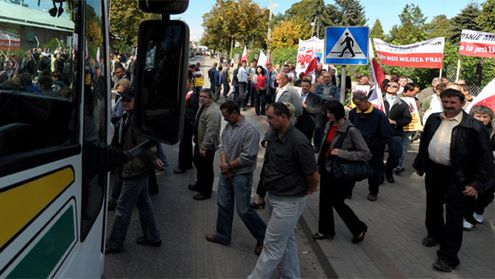 Pracownicy Wojskowego Zakładu Remontowo-Budowlanego w Jarosławiu (woj. podkarpackie) blokują międzynarodową drogę E40 w tym mieście. Protest zorganizowano w związku z decyzją o likwidacji przedsiębiorstwa, które zatrudnia ponad 500 osób.