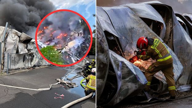 Koszmarna niedziela przy ulicy Pawła Stalmacha w Kędzierzynie‑Koźlu. Po tym jak wybuchł tam pożar, strażacy nie spodziewali się, że będą z nim walczyć do rana. Państwowa Straż Pożarna udostępniła nagranie z drona i zdjęcia z akcji gaśniczej. Ujęcia z powietrza ukazały, jak ogień strawił dwie hale magazynowe. Straty są poważne. W akcji brało udział nawet 250 strażaków. Dogaszanie odbywało się głównie z zewnątrz i przy użyciu ciężkiego sprzętu. Ogień został opanowany nocą, ale dogaszanie trwało do rana. Według informacji przekazanych przez straż pożarną, spłonęły dwie hale wraz z trzymanymi tam elektrycznymi rowerami i hulajnogami.