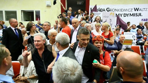 Wystąpienie Gronkiewicz-Waltz dotyczące procesu reprywatyzacji w Warszawie przerywane było skandowaniem: "nie żartuj", "do dymisji", "złodzieje", "lokatorzy", "hańba". Na te okrzyki prezydent reagowała kilkakrotnie mówiąc m.in., że ciężko przekazać jej informację, bo zgromadzeni nie przyjmują jej "z założenia".