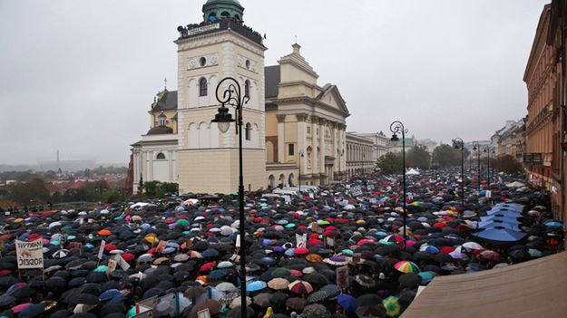 Na placu Zamkowym w Warszawie według danych stołecznego ratusza o godzinie 17.00 było ok. 30 tysięcy osób. Miał to być finał całodziennego protestu kobiet przeciwko planom zaostrzenia przepisów dotyczących przerywania ciąży. Sami organizatorzy mówili o 20 tys. osób, zaś służby porządkowe określiły liczbę protestujących na 17 tys. osób. Uczestnicy warszawskiego protestu wieczorem spontanicznie przemieścili się z pl. Zamkowego przed Sejm. Stamtąd część osób przeszła przed Teatr Polski, gdzie odbywa się gala z okazji 35-lecia "Tygodnika Solidarność", w której uczestniczą m.in. prezydent Andrzej Duda, premier Beata Szydło oraz przedstawiciele rządu.