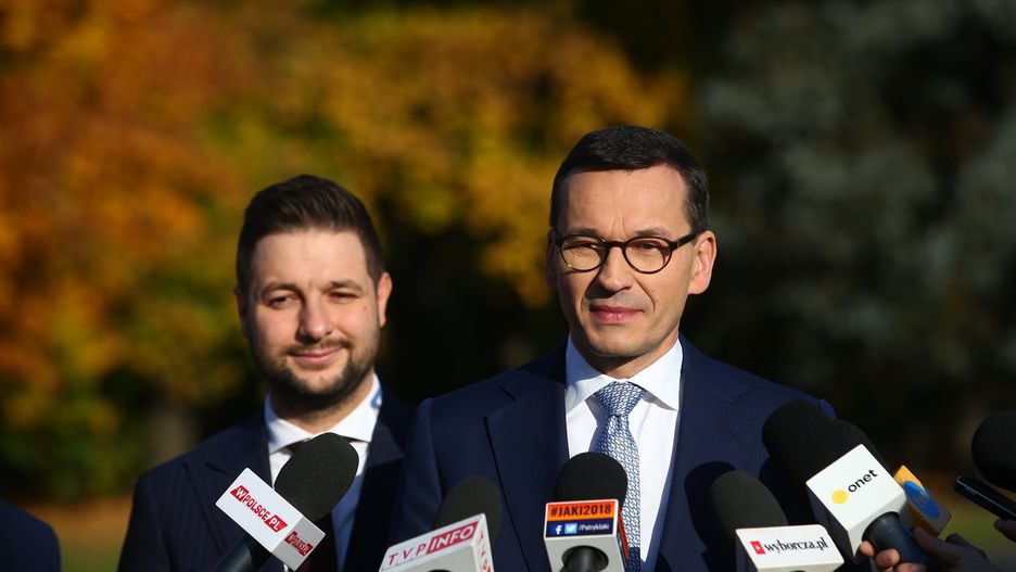 Mateusz Morawiecki w środę wziął udział we wspólnej konferencji z Patrykiem Jakim. - Jak się popatrzy, a Patryk mi to pokazywał, to można powiedzieć, że Trzaskowski zrobi to czego Gronkiewicz-Waltz przez 12 lat nie zrobiła - powiedział Morawiecki.