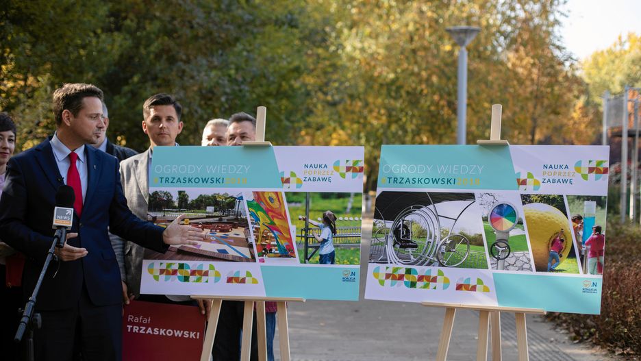 Rafał Trzaskowski podczas czwartkowej konferencji opowiedział o nowym projekcie, który zapowiada w przestrzeni miejskiej - ogrody wiedzy. - Chcemy zbudować w 18 dzielnicach 18 tego typu ogrodów wiedzy. Wszyscy wiemy, jaką nieprawdopodobną popularnością cieszy się Centrum Nauki Kopernik - stwierdził.