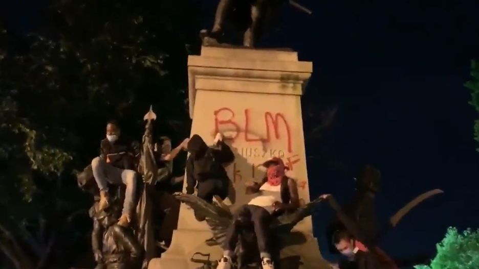 Minionej nocy podczas protestu w Waszyngtonie, zniszczony został pomnik Tadeusza Kościuszki. Rzeźba znajduje się w parku Lafayette przed Białym Domem, pod którym zebrał się rozwścieczony tłum.