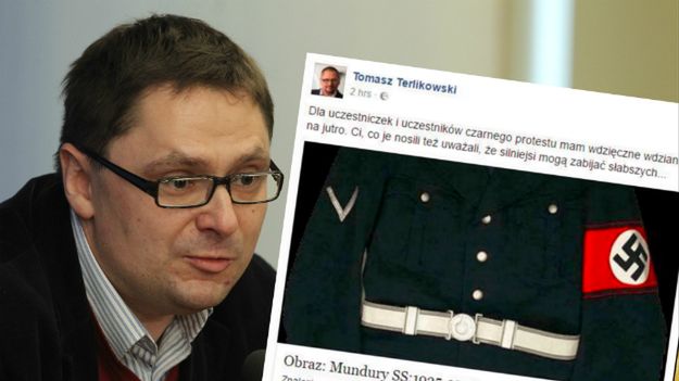 Dla uczestniczek i uczestników czarnego protestu mam wdzięczne wdzianko na jutro. Ci, co je nosili też uważali, że silniejsi mogą zabijać słabszych - taki wpis ze zdjęciem munduru SS ukazał się na profilu społecznościowym redaktora naczelnego Telewizji Republika.