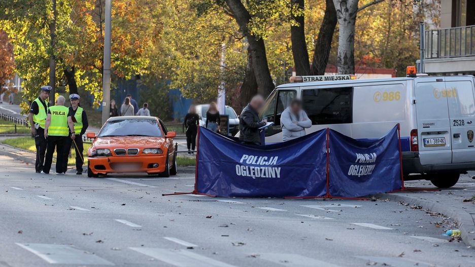Bmw jechało ulicą Sokratesa od Wisły w kierunku Bemowa. Auto poruszało się prawdopodobnie z dużą prędkością - po wypadku obróciło się i zatrzymało kilkadziesiąt metrów za przejściem dla pieszych.